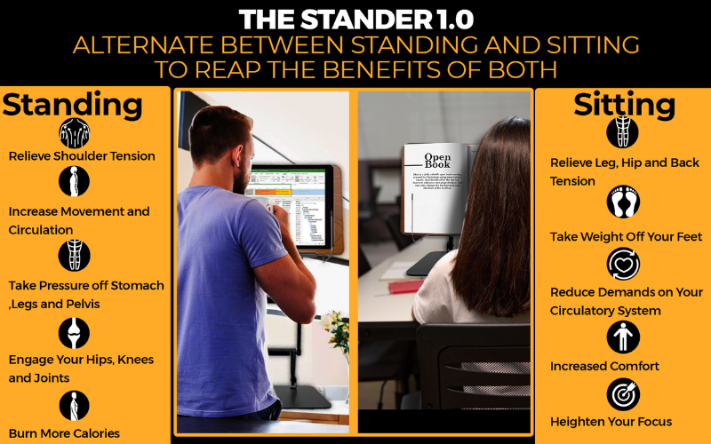 Experience a revolutionary shift in how you approach work, play, study, and more with The Stander 1.0, bringing you to new heights of health and comfort.